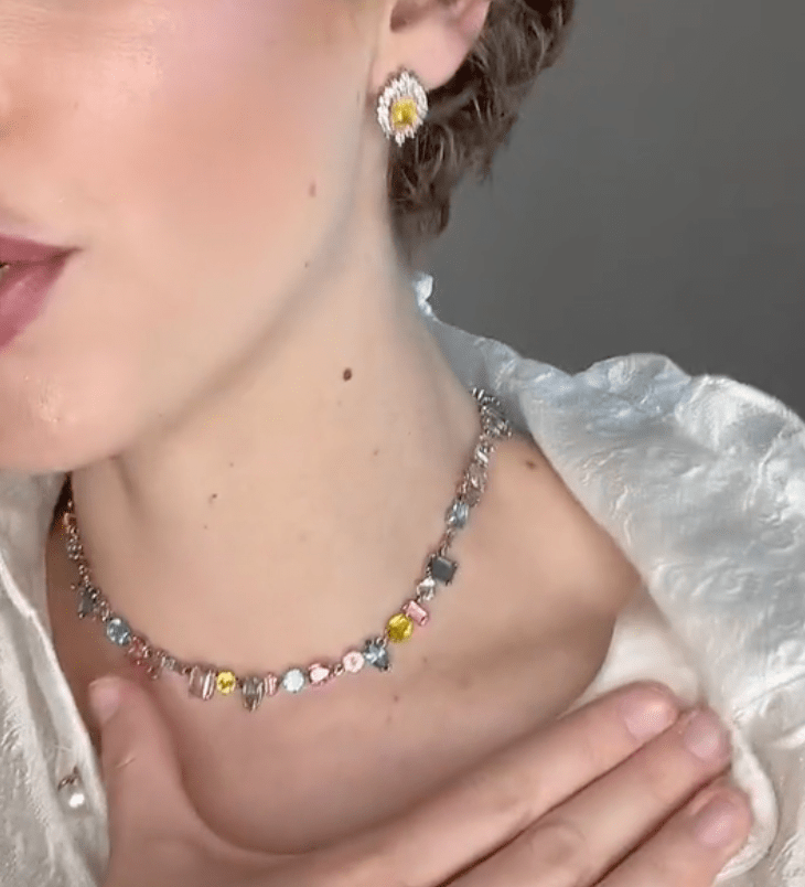 A real head-turner from the Gema family, this stunning necklace is crafted from a dazzling array of crystals in a mix of cuts and colors. Bohemian in inspiration but glamorous in execution, this piece makes a joyful and mood-boosting statement however you choose to wear it.